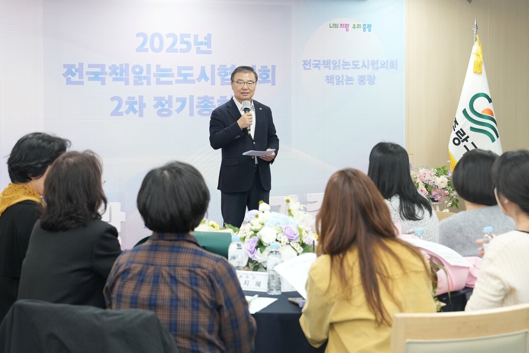 이번 정기총회에서는 협의회 발전에 기여한 우수 회원도시 시상과 함께 2025년도 사업계획을 논의했으며 2부 행사로 중랑구청 1층 로비에서 기획전시 책 읽는 중랑 어제, 오늘 그리고 내일이 열려 중랑구의 독서 문화 정책을 조명했다.