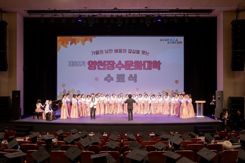 이슈앤/ 서울 양천구(구청장 이기재)가 26일 양천문화회관 대극장에서 제38기 『양천장수문화대학』 통합 수료식을 열고, 지역 어르신들과 함께 배움의 결실을 나누는 뜻깊은 시간을 가졌다.